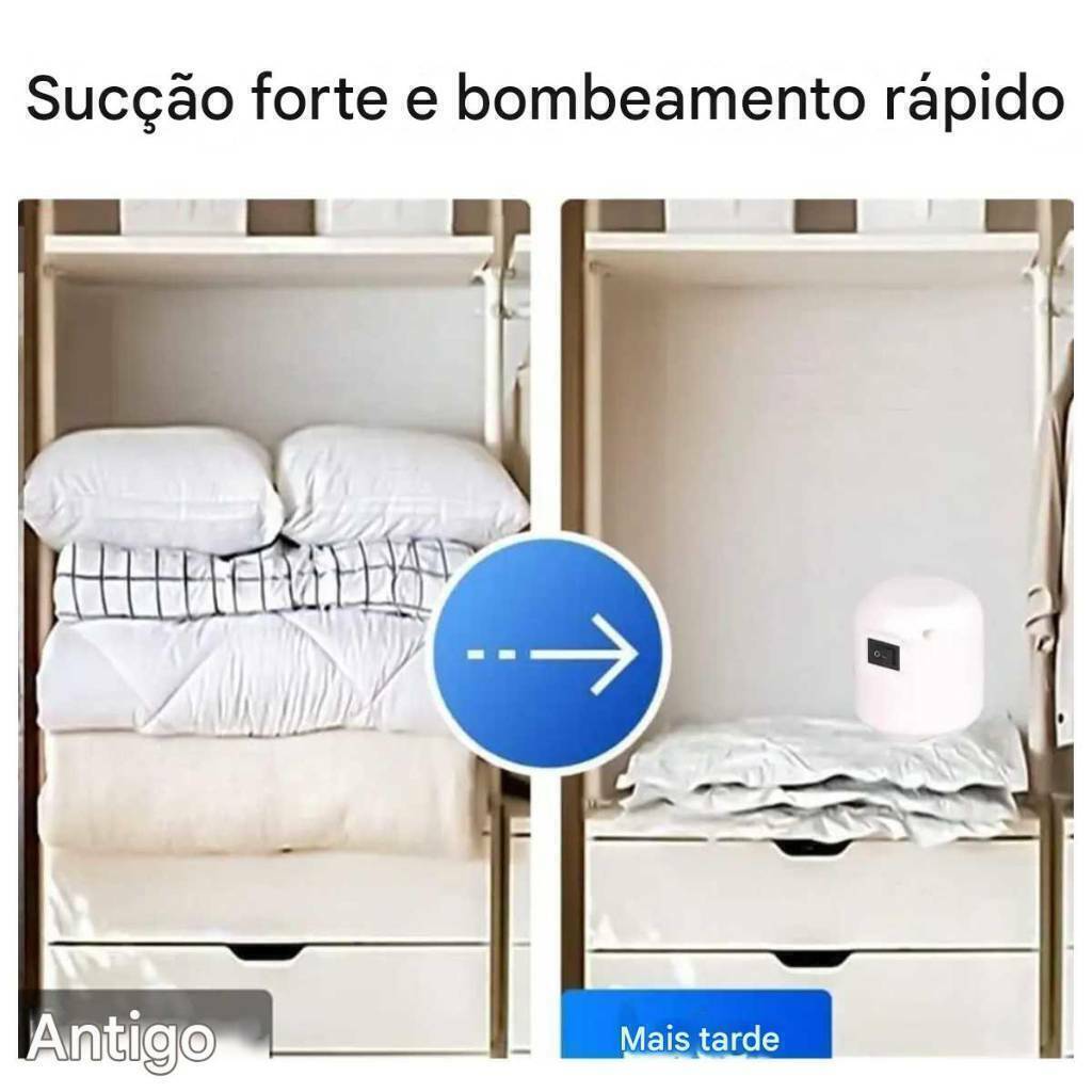 Fabricada em material PP resistente e durável, a bomba possui motor potente de 55W que garante uma sucção eficaz, removendo o ar de sacos de compressão com máxima performance. Seu design ergonômico com tamanho reduzido (apenas 8,5 x 7,4 cm) permite transporte fácil em malas ou mochilas. É o acessório essencial para quem busca organização inteligente, economia de espaço e conservação de roupas por mais tempo.